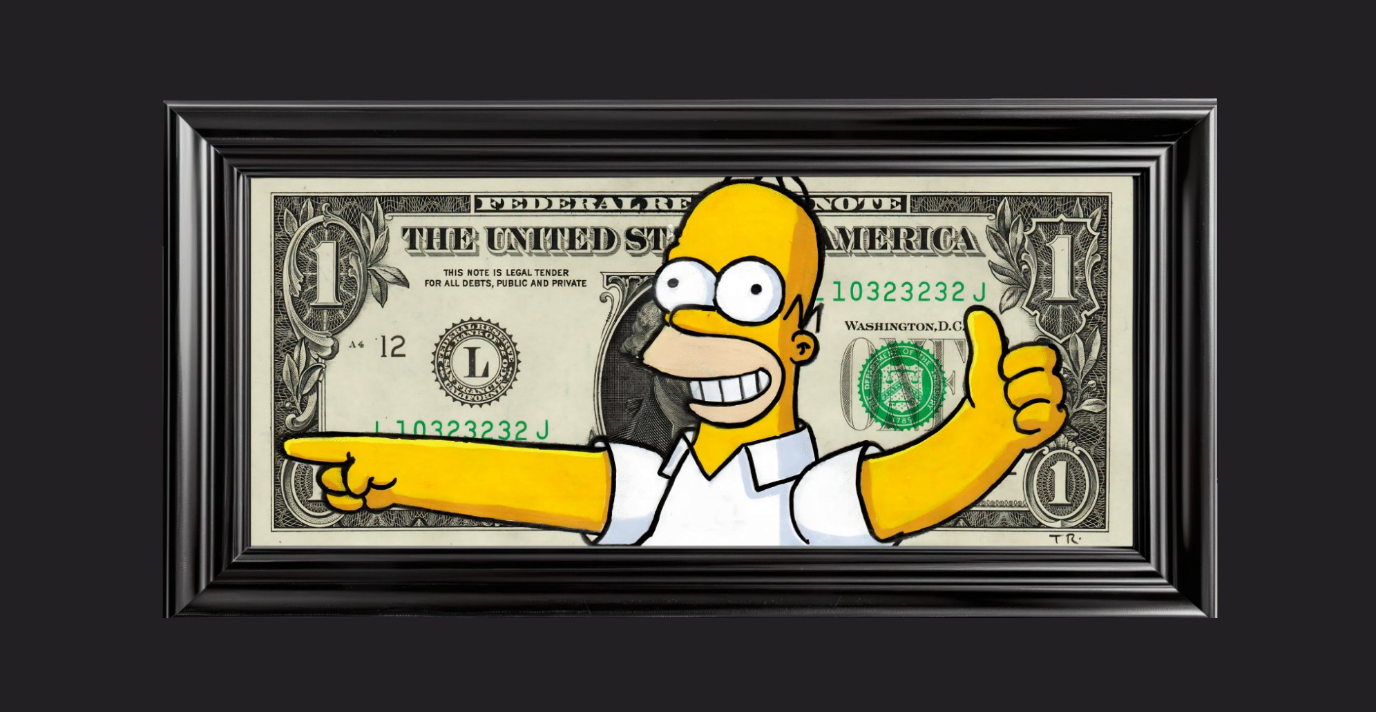 Homer reprend le geste emblématique de Donald Trump, à mi-chemin entre puissance et caricature.